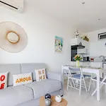 A tengerparti Sea view in Juan Les Pins Apartman apartman 10 percnyi vezetésre van az Antibes Land területétől. Ez a tengerparti apartman szobákat tartalmaz erkéllyel, kanapéval és kávé/teafőzővel.